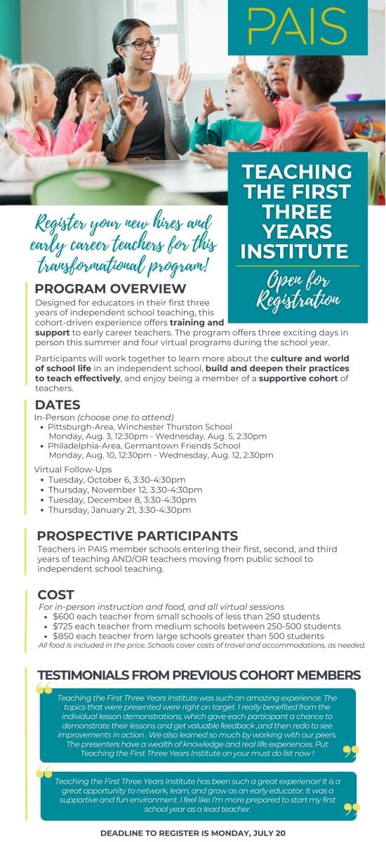 Teaching for the First Three Years Institute 2026-27 Registration (Philadelphia In-Person Program)
